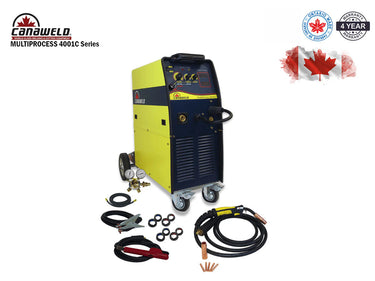 La Multiprocess 4000 es una potente soldadora de 400 amperios , fabricada en Ontario , capaz de realizar soldadura con electrodo revestido , soldadura MIG , soldadura con núcleo fundente y soldadura TIG con arranque por elevación . Su diseño robusto y su alto ciclo de trabajo la convierten en la soldadora ideal para aplicaciones de trabajo medio a pesado .