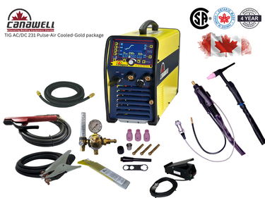 The TIG AC/DC 231 Pulse is a powerful, heavy-duty, and portable Canadian-made welding machine designed for industrial use. Despite its robust performance, it remains easy to carry. Equipped with advanced pulse waveforms, full professional functions, and HF start, it delivers high-quality TIG welds on both thick and very thin materials, ensuring precision with minimal distortion.